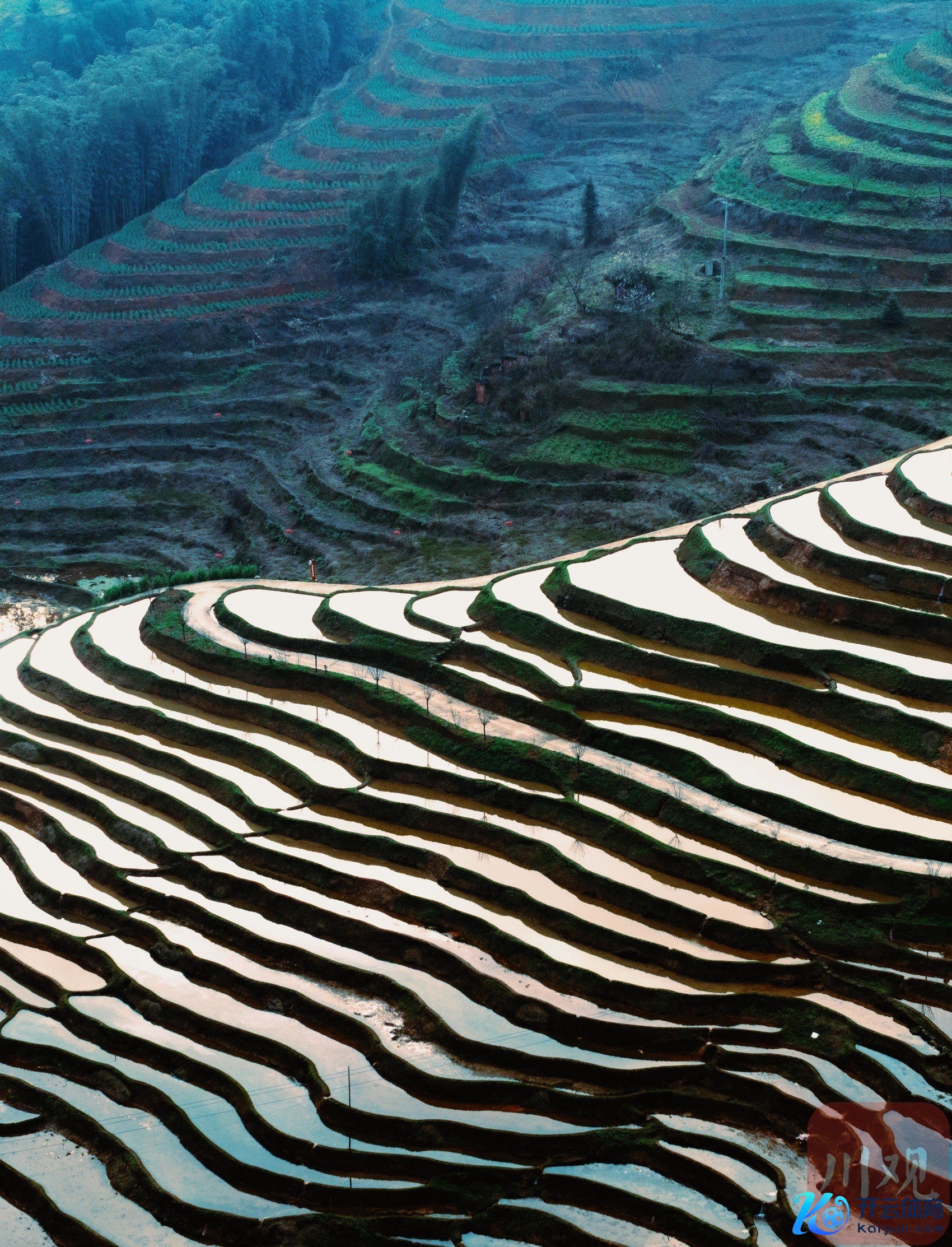 春回地面,万物复苏。3月4日,在泸州市叙永县大石镇旺龙村,千亩梯田水光潋滟,宛如一幅艳丽的野外画卷。当地村民们正抢握农时,蓄水备耕,田间地头一片重荷现象。