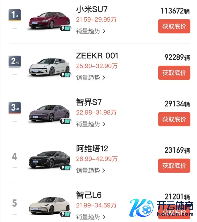 如图可见,在总共这个词中大型车商场里,小米SU7齐处在相对靠前的位置,要知谈,这但是一款本年4月才开启请托的新车,干涉第四季度后,小米SU7单月请托量才突破了2万辆。要是只看单月销量的话,唯比亚迪汉高出于小米SU7。
