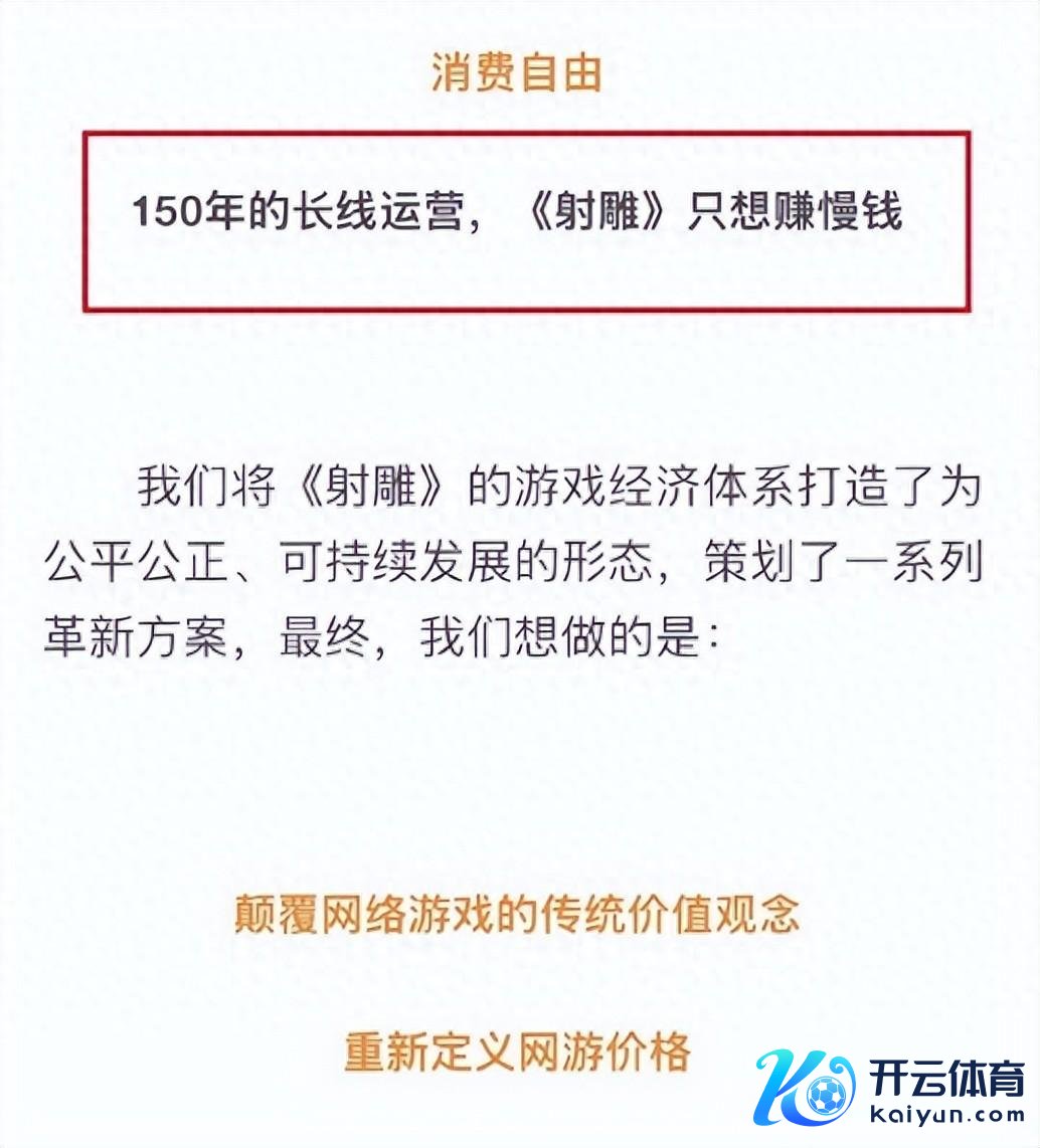 有兴味的是,当初为了诱惑玩家,官方还喊出过“不赚快钱”的标语,说要作念一个“150年的长线运营”,兴味是他们只思安谧赢利,不思急着收割玩家。还喜悦说《射雕》会打造一个更绿色的付费环境,不会逼玩家肝、不会逼氪,还要为止数值延伸,让玩家玩得快意少许。
