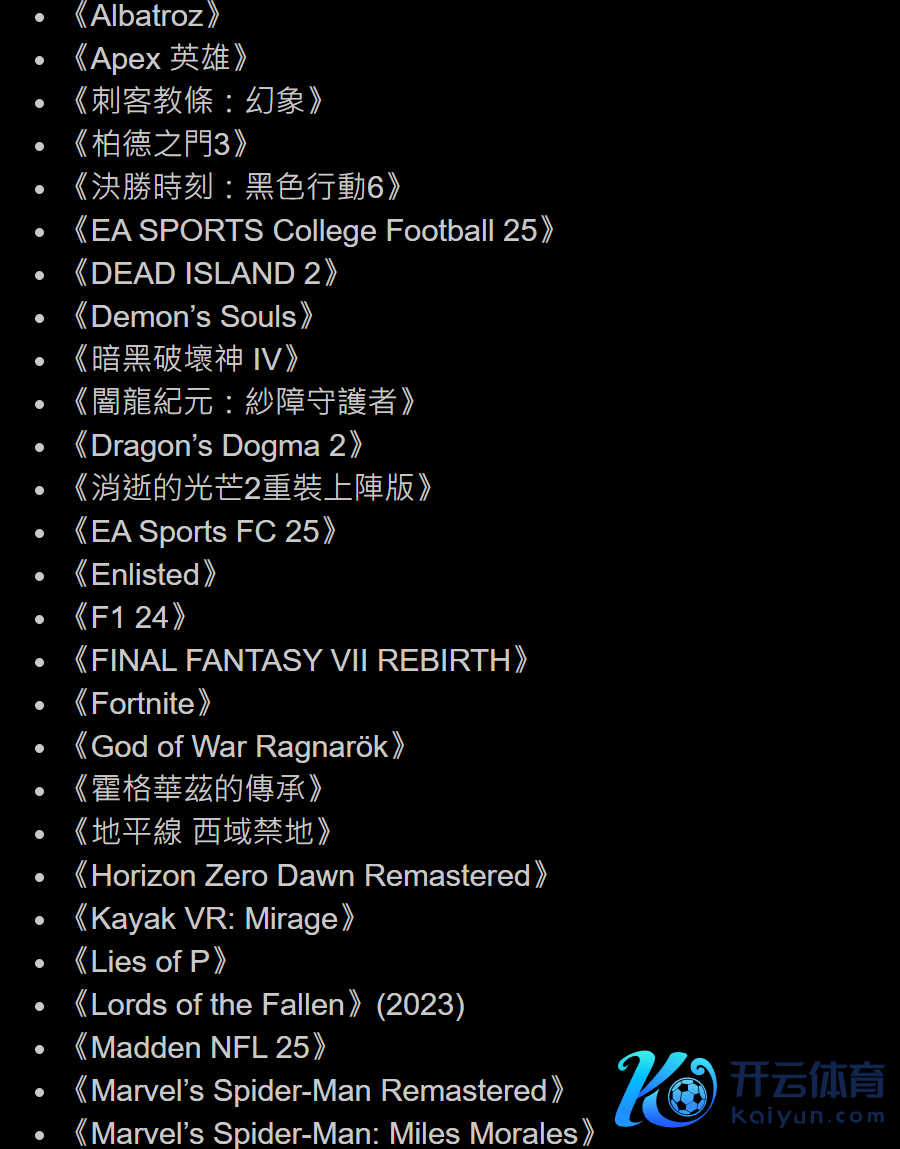 索尼公布的第一批取得PlayStation 5 Pro画面升级的游戏名单(部分)