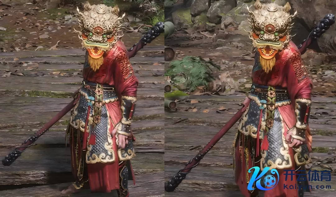 咱们平直对比在合并画面模式下第一版PlayStation 5和PlayStation 5 PRO的画面进展。以清朗宽裕的室外场景为例,不错看到通常是在开启了“性能优先”模式后,PlayStation 5 Pro版的材质纹理较着会更显着一些,而在装备了像彩金狮子头这么带有强金属光泽的披挂后,也能较着看出PlayStation 5 Pro对光影细节的处罚更着实,不会像第一版那样糊成一团,根蒂没法细看。