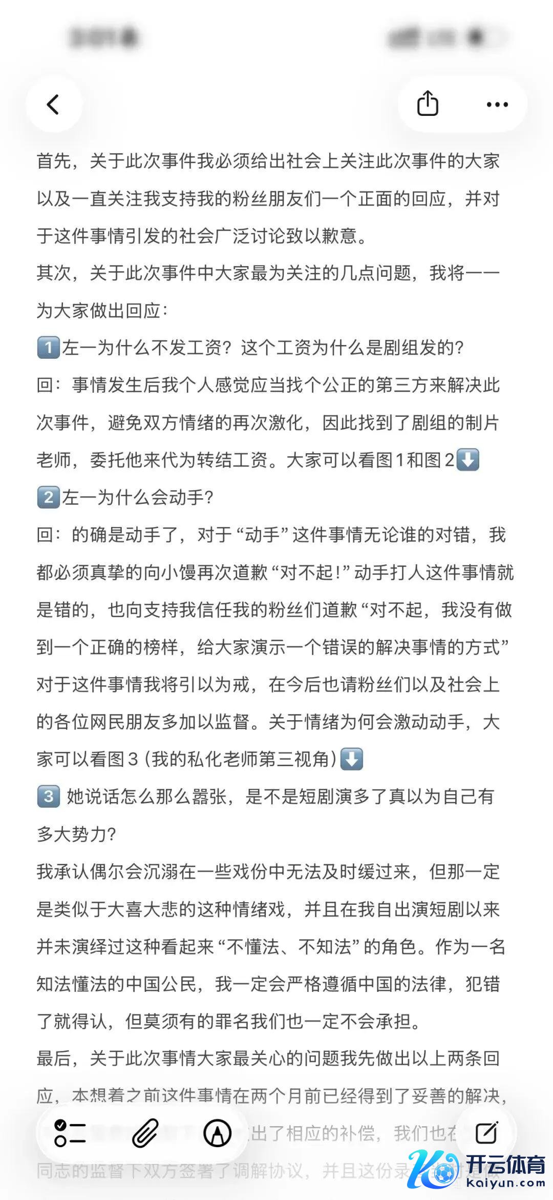 但愿这事儿能给总计艺东说念主提个醒,名气不是耍特性的成本,尊重别东说念主才是最基本的教育。至于左一能不成援手口碑,还得看后续能不成确凿改开yun体育网,而不是只靠一篇没真心的说念歉文。