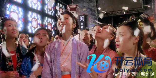 关联词,杜十娘却将箱中张含韵尽数抛入江中,随后怀抱空箱,纵身跃入江中。 要是故事停步于此,那没啥亮点。 但是导演把这个终结改了一下。 在杜十娘投江后,镜头一行,一个发丝滴水、似鬼非鬼的杜十娘竟又回到了灯火妍丽的勾栏。