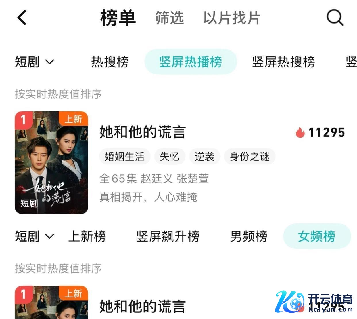 赵廷义此次真是杀疯了!刚刚在腾讯视频上线的短剧《她和他的浮言》,开播第一天就炸出了11295的惊东谈主热度云开体育,相接把腾讯视频短剧竖屏热播榜和女频榜两大榜单的TOP1完全拿下。