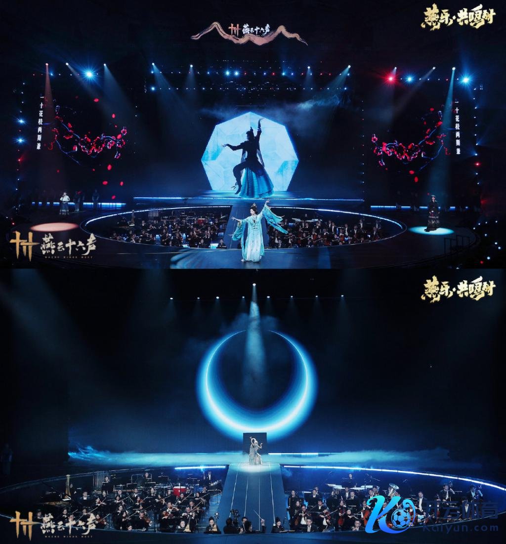 台上既能看到国内顶尖的乐团(中央民族乐团与杭州爱乐乐团),也走着游戏里的变装,有国乐也有蹦迪、有历史也有故事。游戏、侠义和当下当代化的潮水,都被他们煮成了大杂烩。