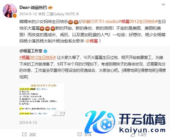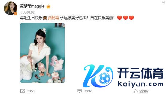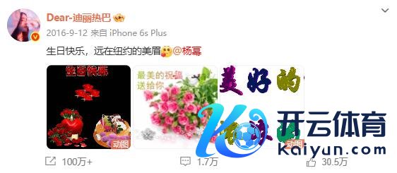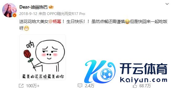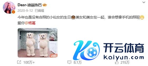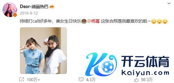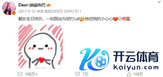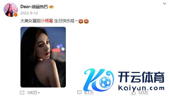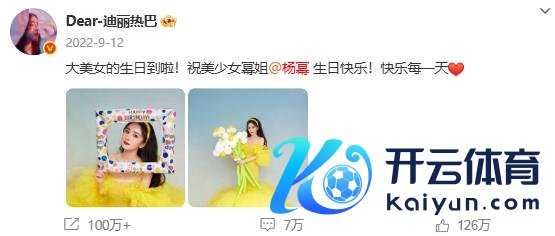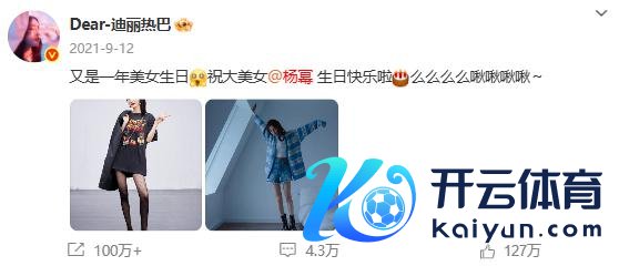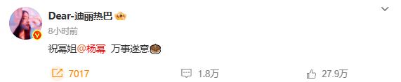 迪丽热巴零点准时为杨幂发文庆生,"祝幂姐 @杨幂万事遂意� � "据悉,这依然是迪丽热巴集中 12 年为杨幂卡点发文。