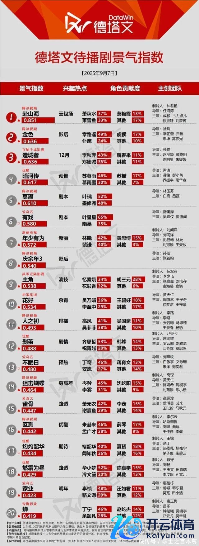 TOP10名次 与晋长安(黎霜40%晋安30%)子夜归(梅逐雨35%武祯31%)归队(鲁长山29%汤德远25%)十二封信踪迹献鱼瑕瑜局灼心巨塔之后二龙湖村暖花开2 德塔文本日解读 本日市集:《与晋长安》升至榜首,头部剧集竞争热烈 本日剧集: 《瑕瑜局》开局反响平平,制作亮点难掩节拍硬伤 刑侦剧《瑕瑜局》于近日登陆优酷,开播后市集反响凡俗,最高景气指数1.094,未能参预头部竞争序列。 尽管市集发达平平,但该剧在制作层面和本体设定上具备一定的工业化亮点。领先,以动作时局为代表的硬核制作赢得市集认同。剧中“60秒一镜到底”打戏、火车车厢追赶等段落,凭借塌实的时局疗养与视觉冲击力,在短视频平台变成灵验传播,成为其口碑构建的中枢。其次,剧集在叙事和东说念主设上尝试互异化解围。“反扒+缉毒”的双线并行设定在同类题材中具备崭新感,而“贼毒不同说念”的内在突破则为后续剧情提供了张力。演员方面,除了杨旭文与王砚辉的“双强”组合,徐洪浩、赵荀等特种兵题材熟样子的加入,也精确招引了垂青豪杰声威的垂直受众。 但是开云体育,这些亮点当今未能灵验升沉为众人热度,剧集播出成果欠安,操办主要指向表里部双伏击素。从本体本人看,开篇叙事节拍是其主要短板。部分不雅众反馈首集铺垫过长,情节鼓动缓缓,存在较着的“劝退”效应,导致剧集难以在第一技艺收拢泛用户的预防力,影响了前期不雅众的灵验留存。从外部市集操作看,该剧四肢一部积压作品,又汲取了“今天定档未来开播”的极限开播样子,仓促的营销政策导致前期预热严重不及,未能为其开播集聚起灵验的市集怜惜度,最终导致其制作层面的上风难以在开播初期充分开释。 《瑕瑜局》由赵浚凯、侯杰、易勇执导,杨旭文、王砚辉主演,优酷、捷成星纪元影视、无锡星期间、骏凯特文化、优象责任室出品。 待播剧当日景气TOP20