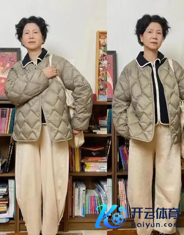 遴荐绗缝棉服,最主要的是它的策动走线,大约让这件一稔不会过于蓬松,穿在身上也不会显胖,正值顺应中年女性,因为东谈主到中年,体魄的推陈出新变得逐步,很容易发福发胖,这时辰我们用绗缝棉服来穿搭,能更好的修饰你的身体,像上头这位素东谈主,径直用一条浅卡其色的阔腿裤来搭配就够。