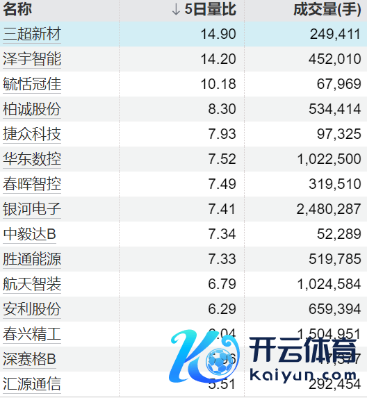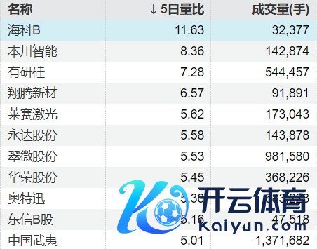 11只个股5日量比跨越5倍云开体育11只个股5日量比跨越5倍