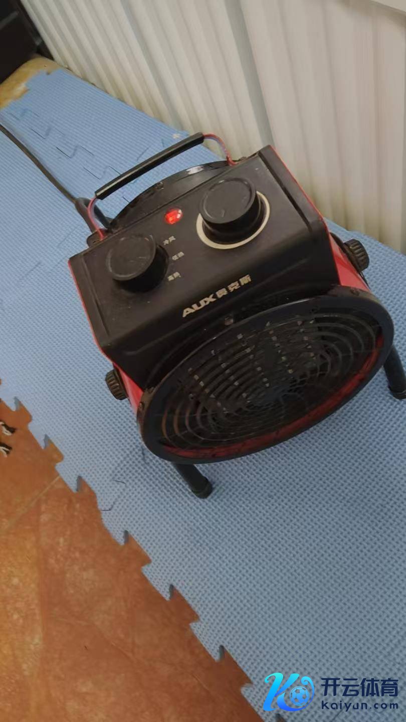 小区物业东说念主员用暖风机取暖(小区物业供图)